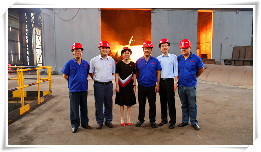 雙方領(lǐng)導(dǎo)在黨員示范生產(chǎn)線合影留念