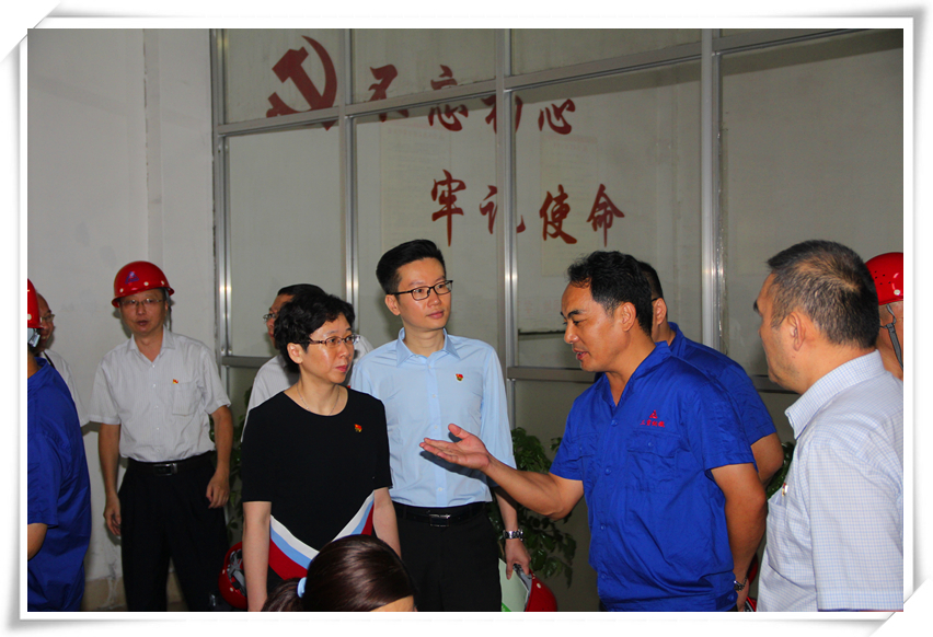 董事長(zhǎng)王光文向中行領(lǐng)導(dǎo)介紹黨員示范生產(chǎn)線情況