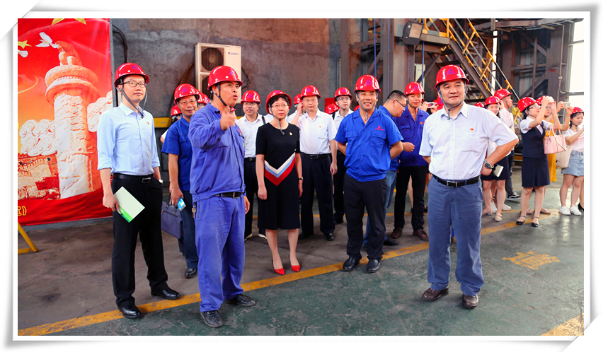 煉鐵廠廠長(zhǎng)潘勇在黨員示范生產(chǎn)線現(xiàn)場(chǎng)講解