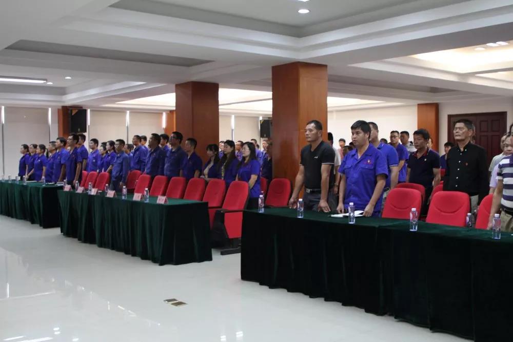 大會第一項議程--奏國歌。新中國成立70年以來,在中國共產(chǎn)黨的堅強領(lǐng)導(dǎo)下,我國取得了不平凡的成就。全體與會成員在國歌聲中肅然起立,面向主席臺的黨旗,向祖國、向黨致敬。
