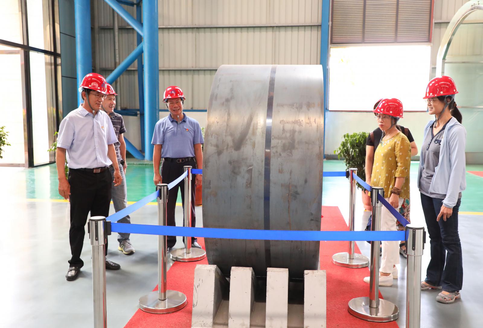 參觀熱卷廠黨員示范生產(chǎn)線最薄產(chǎn)品(厚度1mm)