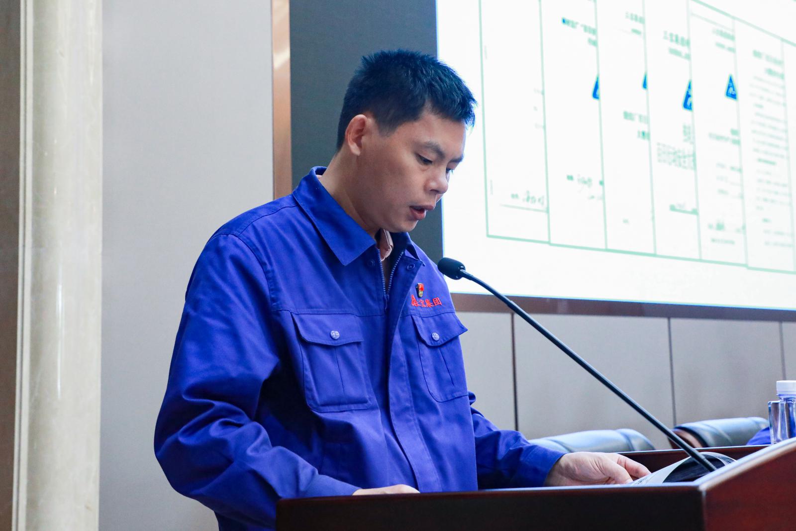 圖為熱卷廠廠長(zhǎng)張子彥作安全環(huán)保管理標(biāo)兵經(jīng)驗(yàn)分享