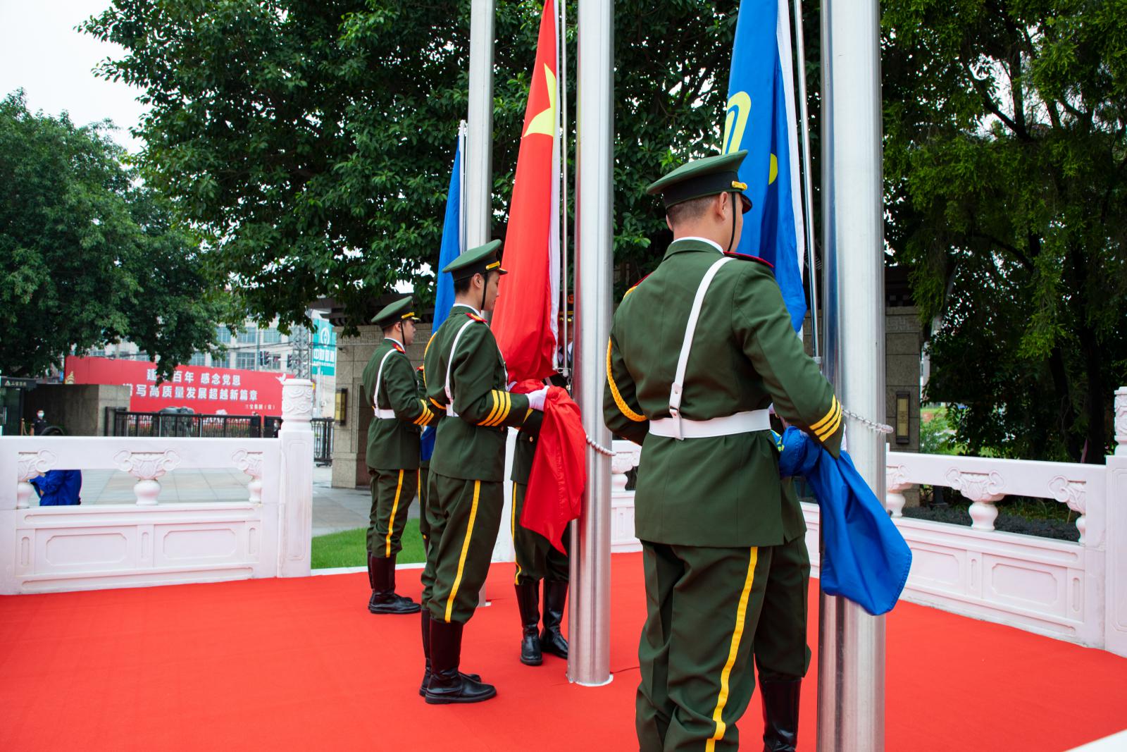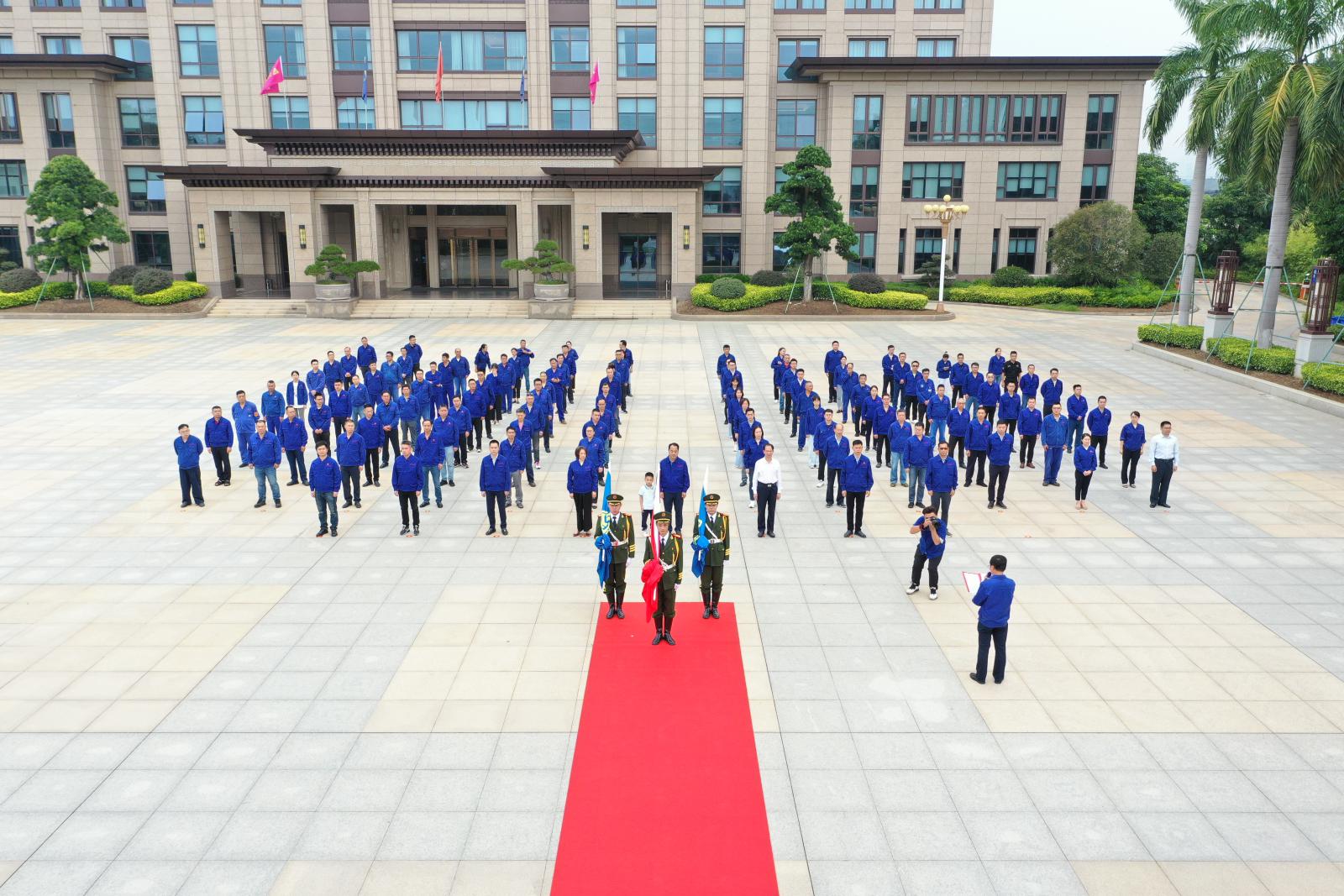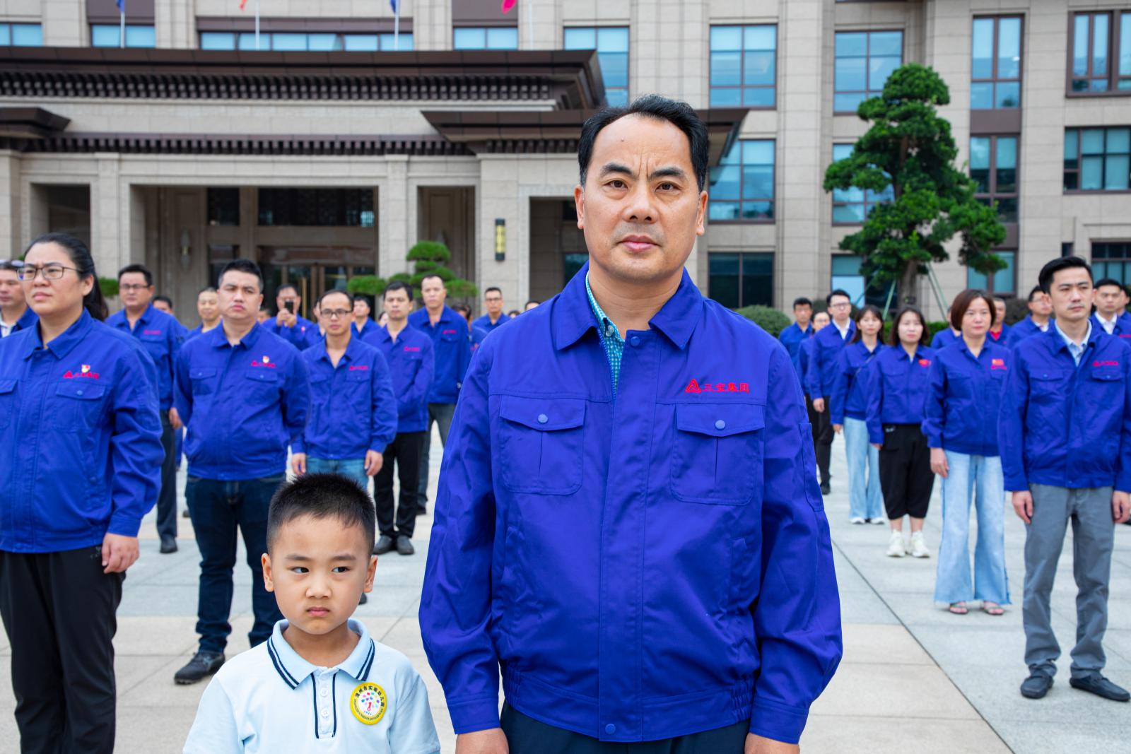 三寶集團董事長王光文帶領公司全體中高層領導、黨委委員、支部書記、支部委員出席升旗儀式。升旗儀式由黨委書記林軍主持。