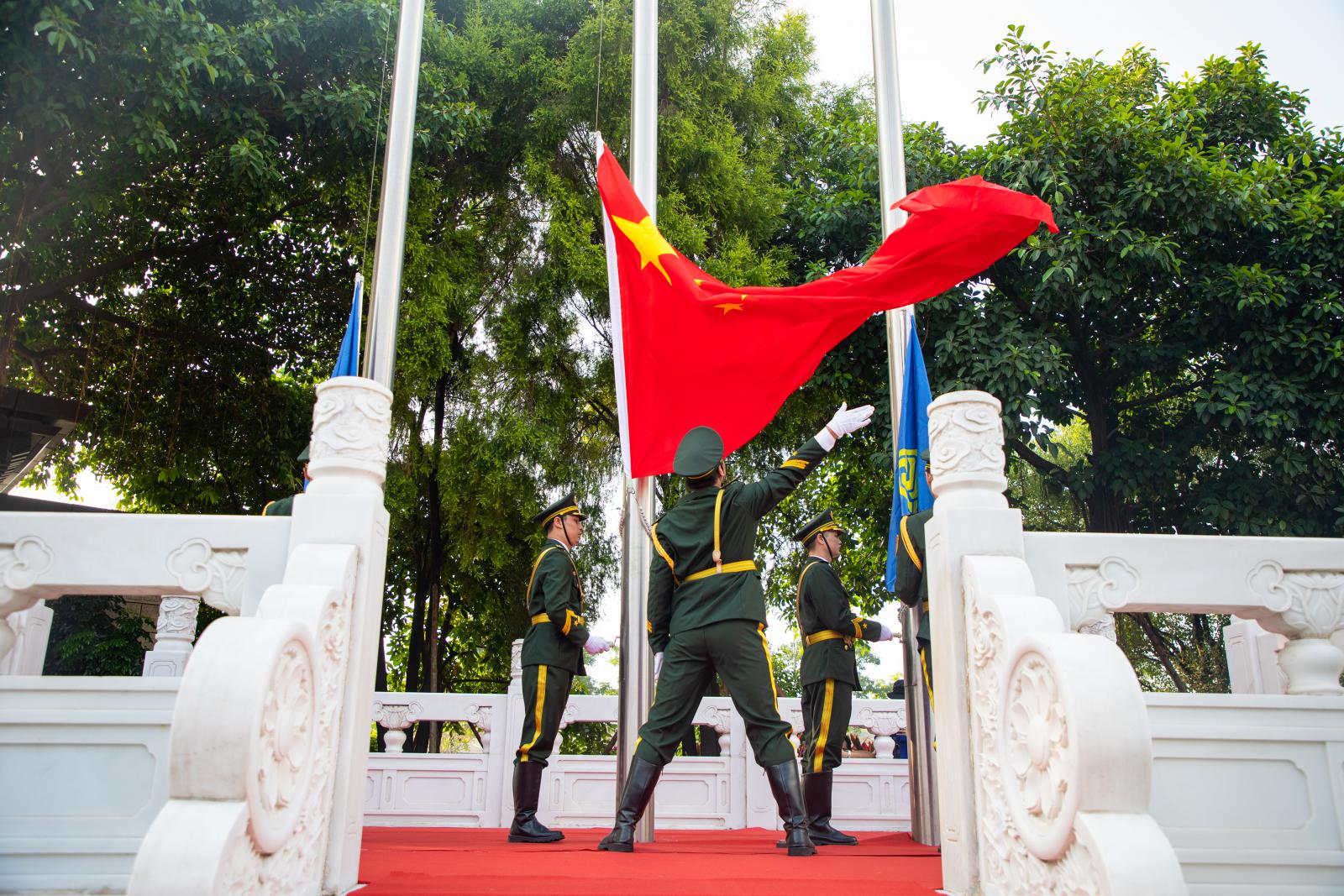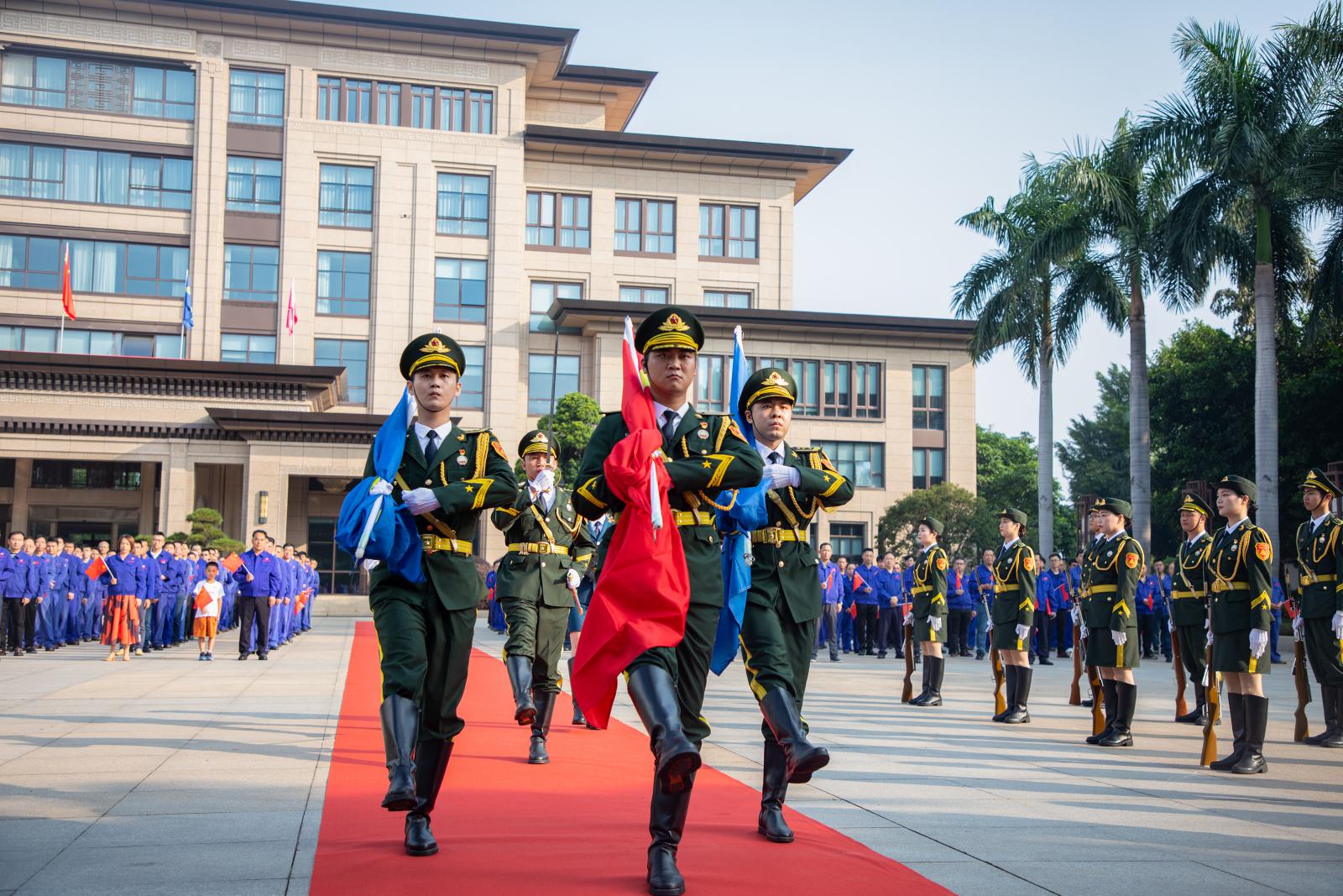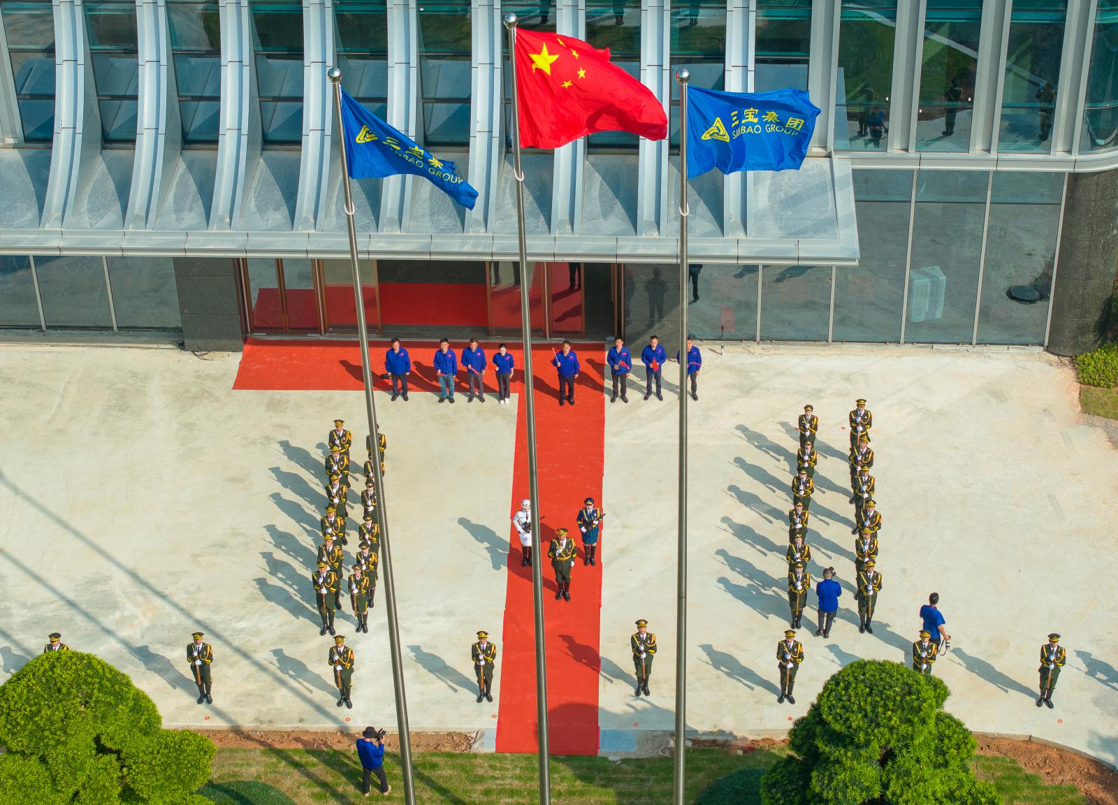 同日上午9時(shí),在三寶廣場(chǎng)也舉行了莊嚴(yán)的升國(guó)旗儀式,董事長(zhǎng)王光文帶領(lǐng)集團(tuán)高層領(lǐng)導(dǎo)參加了升旗儀式。