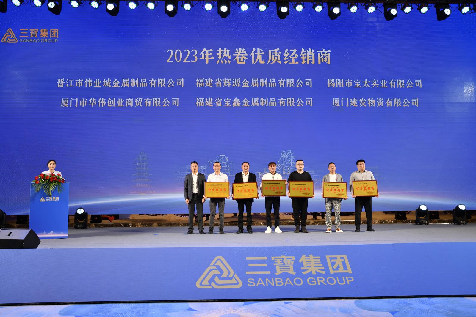 在熱烈的掌聲中,三寶集團領(lǐng)導分別為最佳戰(zhàn)略伙伴,優(yōu)質(zhì)經(jīng)銷商、供應(yīng)商,優(yōu)秀合作伙伴頒獎,并舉行2023-2025年戰(zhàn)略合作協(xié)議、2024年度廠商合作協(xié)議簽約儀式。