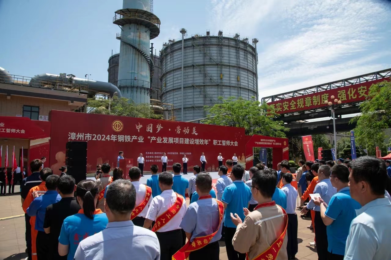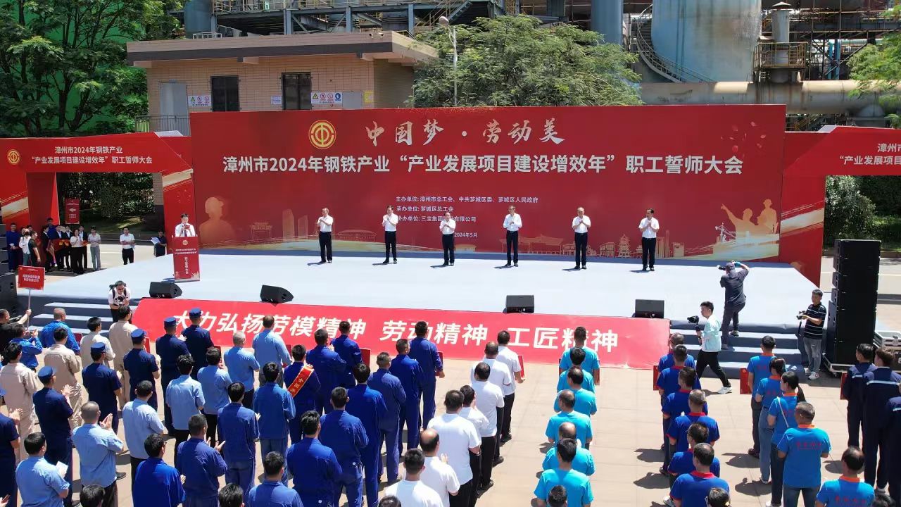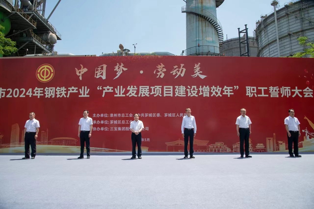 為大力弘揚勞模精神、勞動精神、工匠精神,展現(xiàn)漳州市鋼鐵產業(yè)職工隊伍的時代風采和使命擔當,扎實做好“穩(wěn)運行、防風險、提質量、優(yōu)結構、促轉型、增效益”工作,推進我市鋼鐵工業(yè)高質量發(fā)展,5月29日,由漳州市總工會、中共薌城區(qū)委、薌城區(qū)人民政府聯(lián)合主辦,薌城區(qū)總工會承辦,三寶集團股份有限公司協(xié)辦的漳州市2024年鋼鐵產業(yè)“產業(yè)發(fā)展項目建設增效年”職工誓師大會,在薌城區(qū)浦南鎮(zhèn)三寶集團股份有限公司廣場舉行。市人大常委會主任李東河,市委常委、秘書長、市總工會主席張鴻,市政府副市長林少金出席活動。