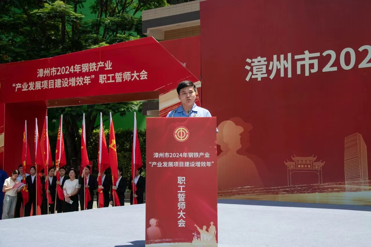 福建龍軸集團代表、市勞動模范蘇河燦作為職工代表,提出倡議,全市鋼鐵產業(yè)職工要提高政治站位,勇?lián)鷼v史使命,錘煉過硬本領,立足本職崗位,投身鋼鐵產業(yè)發(fā)展。在市委、市政府的堅強領導下,用精神凝聚力量,用勞動托舉夢想,共同為漳州全力打造全省高質量發(fā)展新的重要增長極。