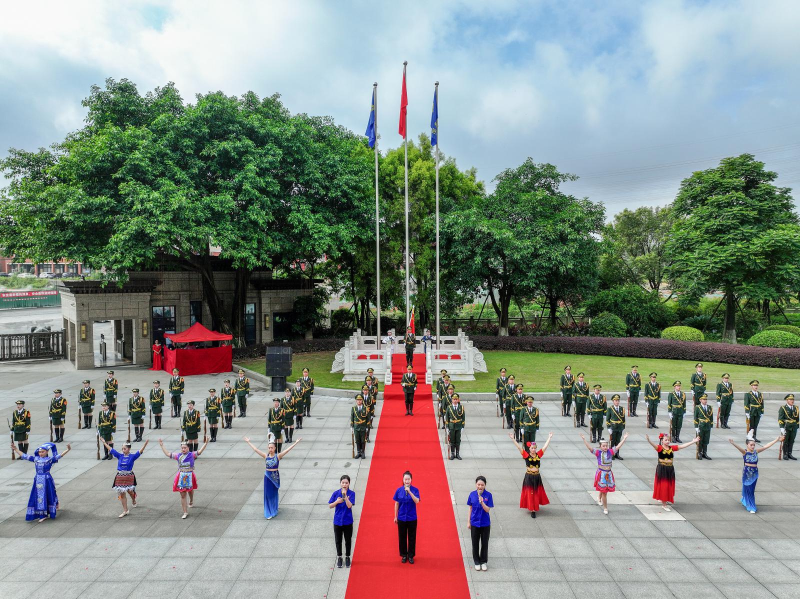 升旗儀式后舉行了廣場(chǎng)表演,歌舞《我的祖國(guó)》和《祖國(guó)萬(wàn)歲》表現(xiàn)了心懷祖國(guó)、對(duì)黨忠誠(chéng),國(guó)旗護(hù)衛(wèi)隊(duì)的表演讓大家耳目一新,展示了三寶“團(tuán)結(jié)拼搏、追求卓越”的企業(yè)精神,王光文董事長(zhǎng)還帶領(lǐng)公司高層和大家合影留戀。