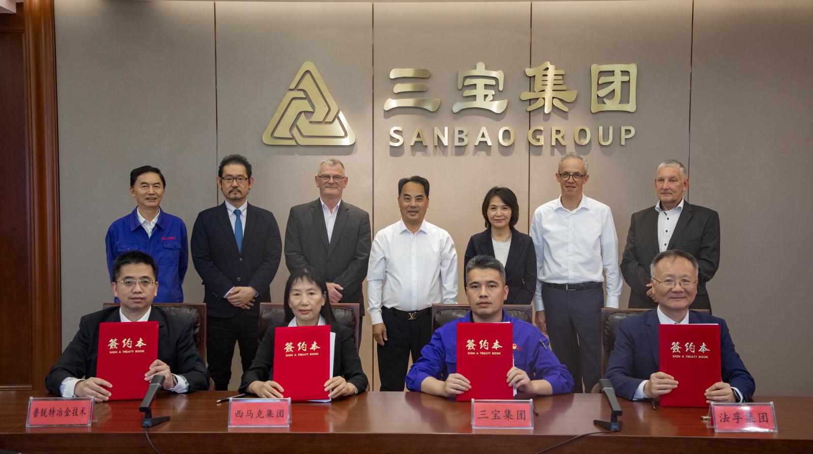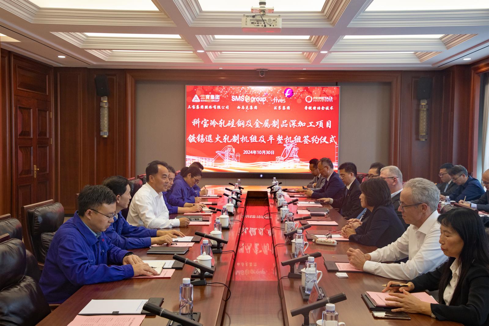 10月30日下午,三寶集團(tuán)與西馬克集團(tuán)、法孚集團(tuán)、普銳特中國簽訂鍍錫退火軋制機(jī)組及平整機(jī)組合同。