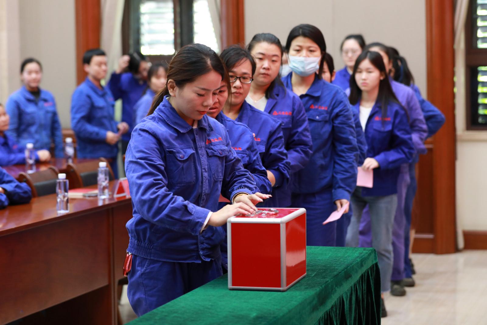 會議在雄壯的國歌聲中拉開序幕。大會選舉產(chǎn)生了三寶集團婦聯(lián)第一屆執(zhí)行委員會,吳婧、吳小貞、陳淑娜、林微娜、林雅雪、詹藝珊、蔡藝玲7名同志當選為三寶集團婦聯(lián)第一屆執(zhí)行委員,詹藝珊當選為三寶集團第一屆婦聯(lián)主席;吳婧當選為副主席。新當選的公司婦聯(lián)主席詹藝珊作了表態(tài)發(fā)言。