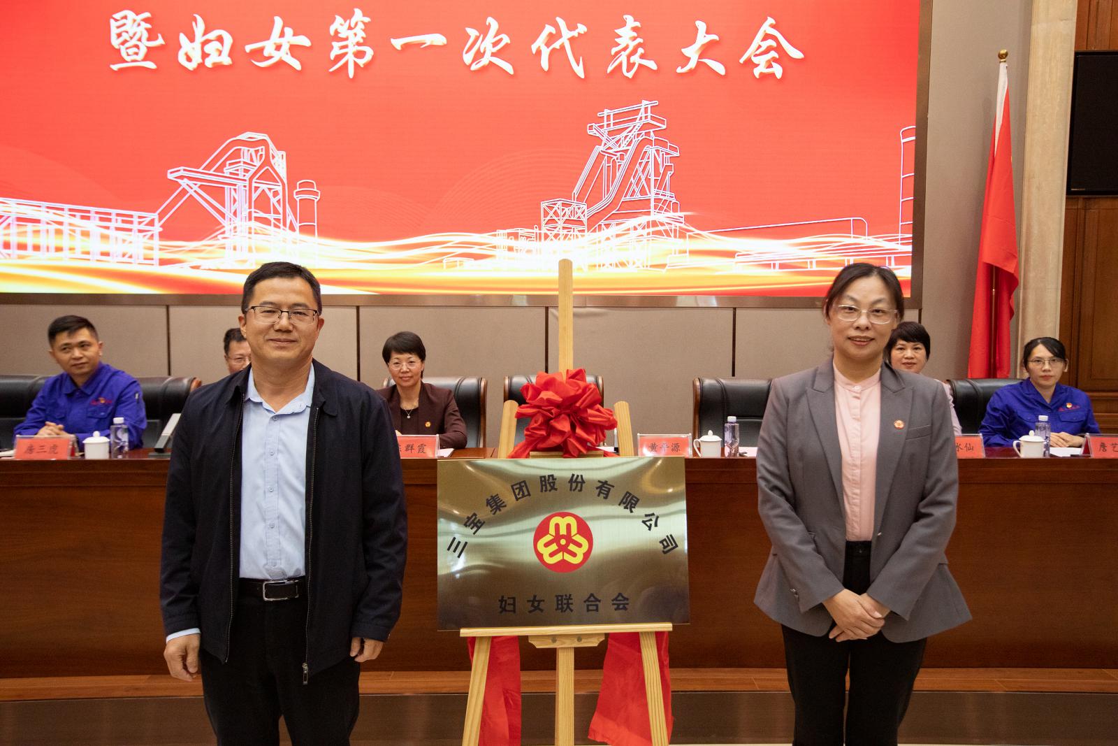薌城區(qū)委副書記、區(qū)紀委書記、區(qū)監(jiān)委主任黃平源,漳州市婦聯(lián)黨組成員、副主席趙藝清為新成立的三寶集團婦女聯(lián)合會揭牌。