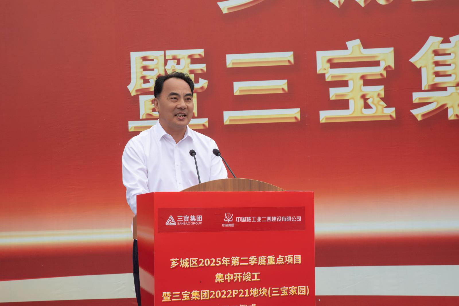 中核二四公司黨委書記、董事長李兵作為承建方致辭。他表示,三寶集團是優(yōu)秀的長期戰(zhàn)略合作伙伴,憑借過硬的品質(zhì)、高效的履約和優(yōu)質(zhì)的服務(wù),與中國核電建設(shè)事業(yè)共同成長。三寶家園作為漳州市重點民生工程與硅鋼產(chǎn)業(yè)園人才安居項目,寄托著全體三寶人對美好生活的向往,更是推動漳州產(chǎn)城融合、助力薌城區(qū)打造“鋼鐵脊梁”的重要實踐。中核二四將憑借央企的技術(shù)、管理和資源優(yōu)勢,以“核電標(biāo)準(zhǔn)”打造精品工程,以“工匠精神”鑄就品質(zhì)住宅,助力漳州經(jīng)濟高質(zhì)量發(fā)展。