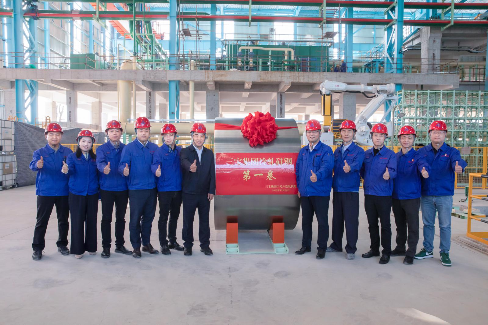 三寶集團冷軋硅鋼一期項目——1號六機架酸連軋機組和硅鋼退火涂層機組圓滿完成試車,第一卷合格冷軋產(chǎn)品成功下線,標(biāo)志著三寶集團正式躋身高端金屬新材料制造企業(yè)行列。